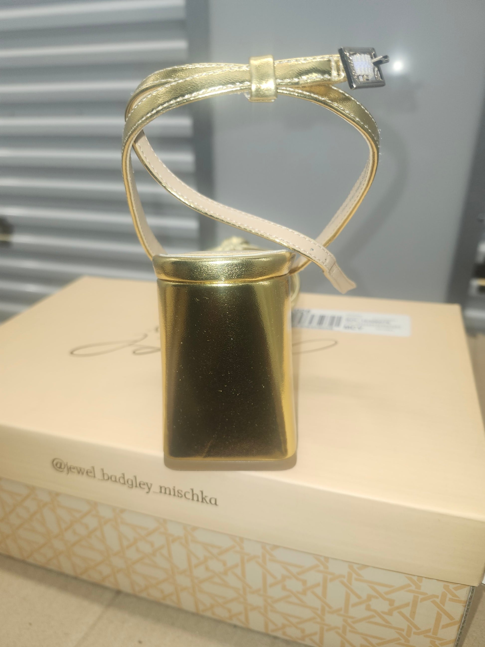 Jewel Badgley Mischka Nariah Gold Leather Sandals, Size 8.5MUS