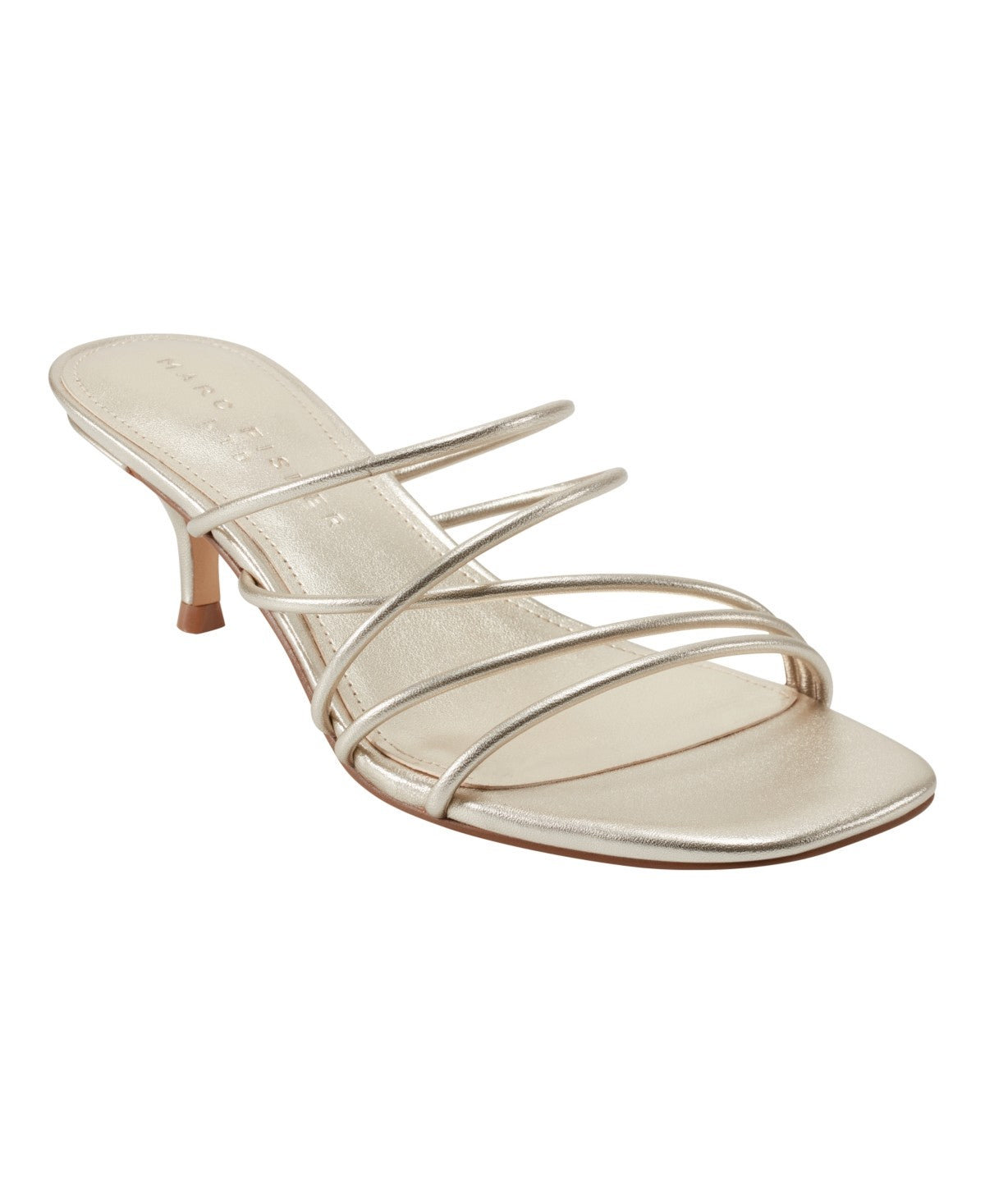 Elevate your style with the Marc Fisher Ltd Banna Gold Leather Kitten Heels. Perfect for any occasion, these chic sandals feature a mid-stiletto heel and a strappy silhouette, blending comfort with elegance. Ideal for fashion-forward individuals.