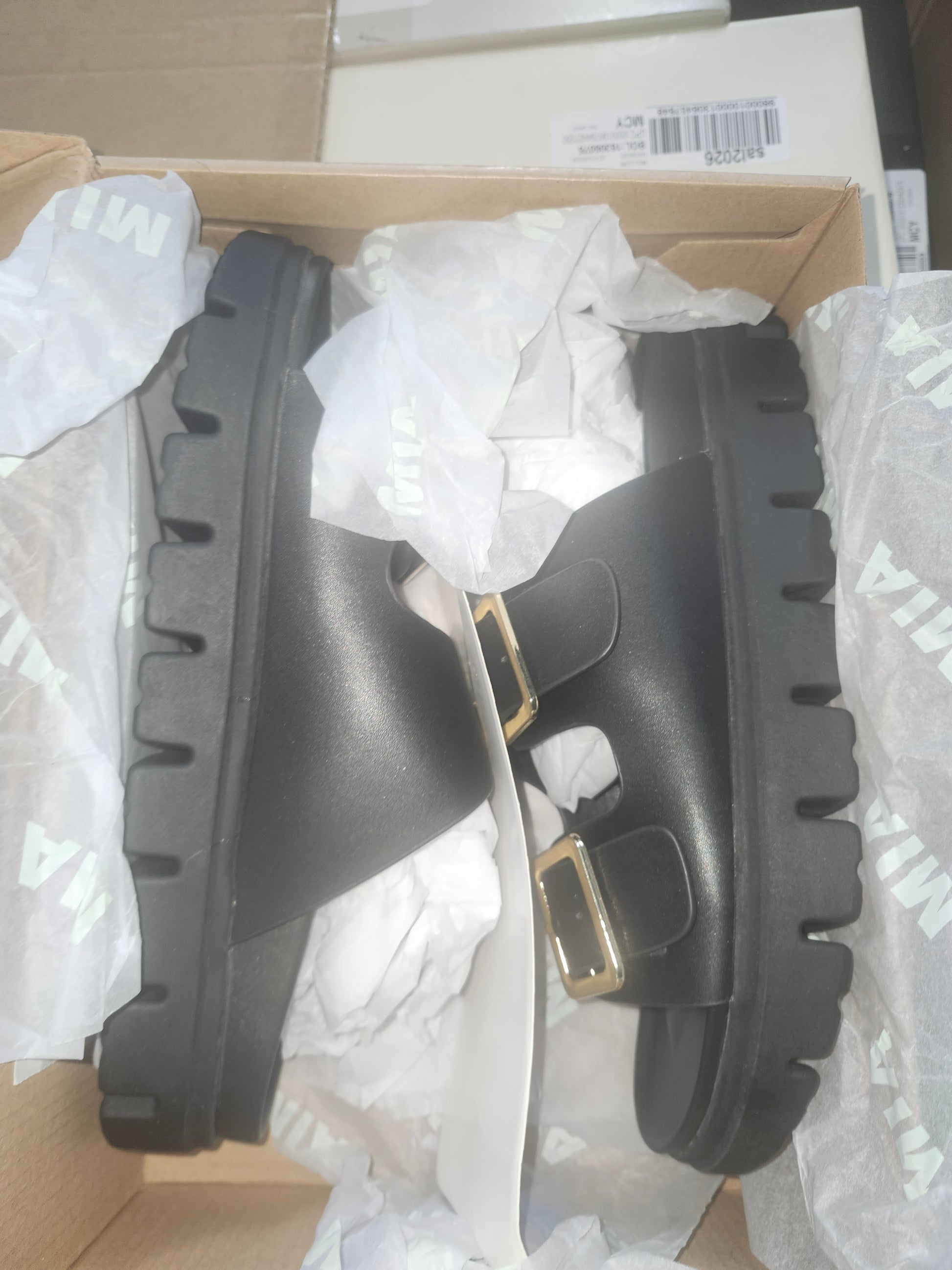 Step out in style and comfort with the MIA Gen Women's Wedge Shoes, featuring chic black/gold buckles and a supportive faux leather build. Perfect for any occasion, these size 9 sandals offer easy adjustability and a sleek design.