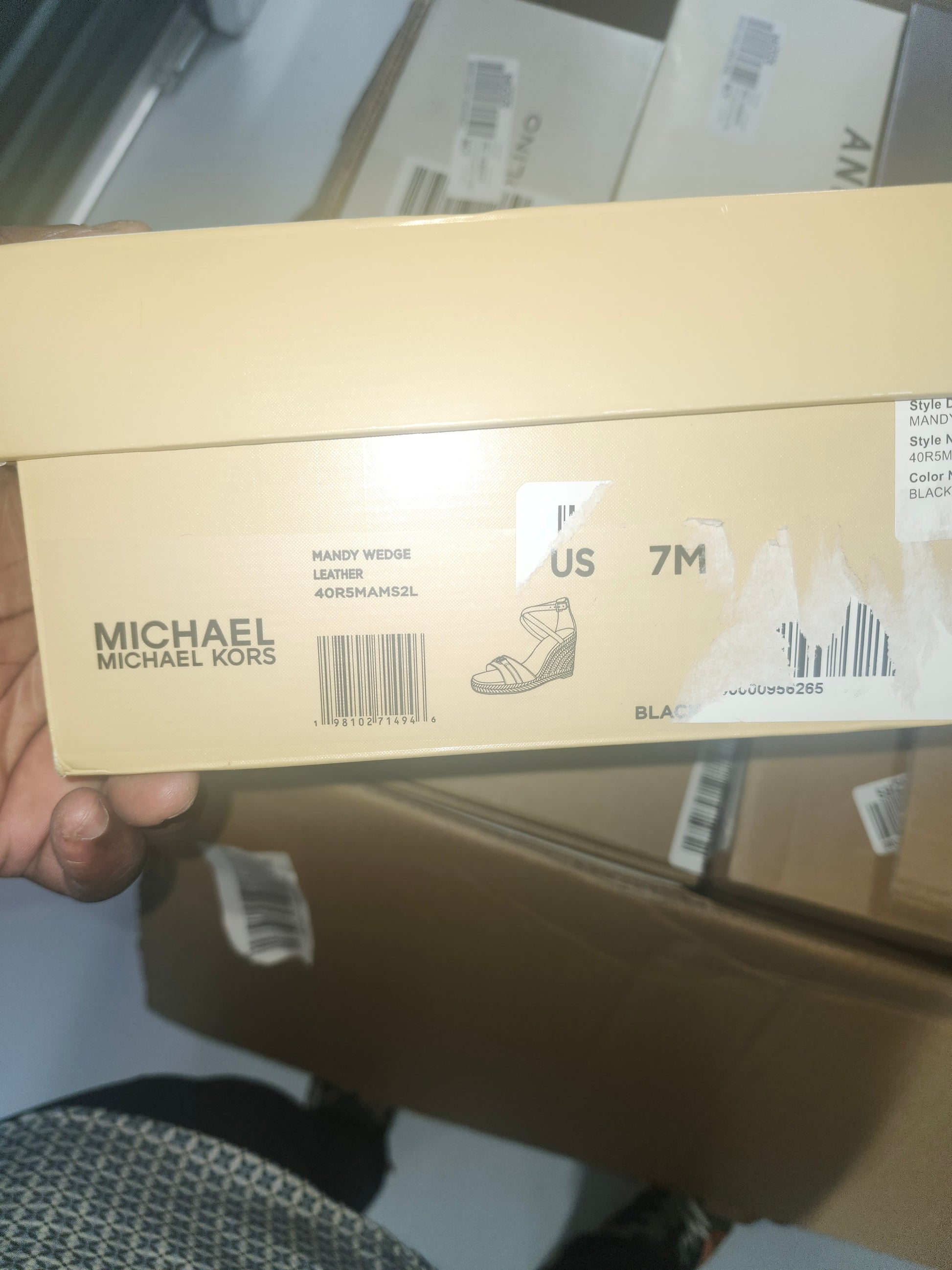 MICHAEL Michael Kors Mandy Wedge Sandals, Black Leather Size 7M