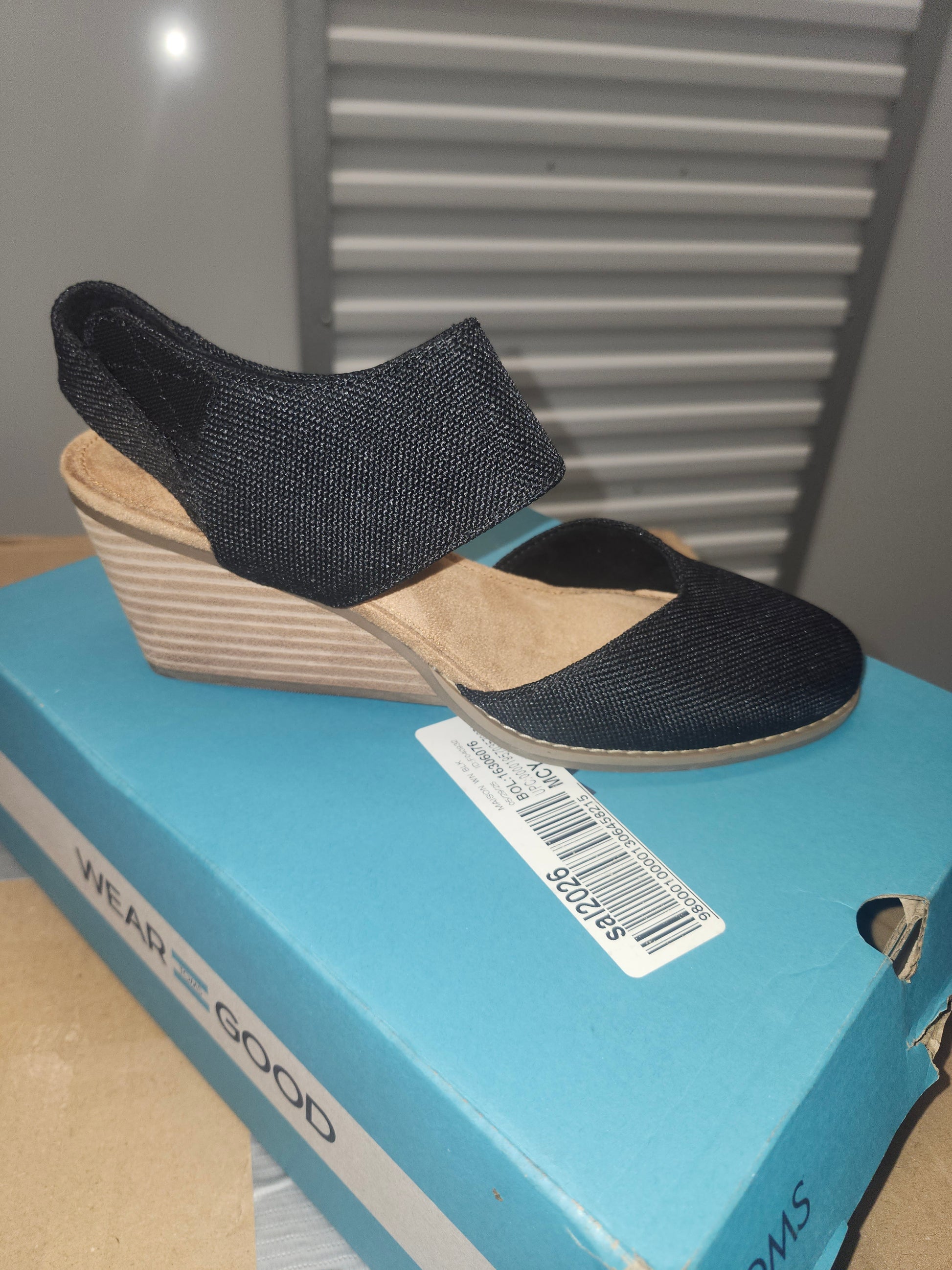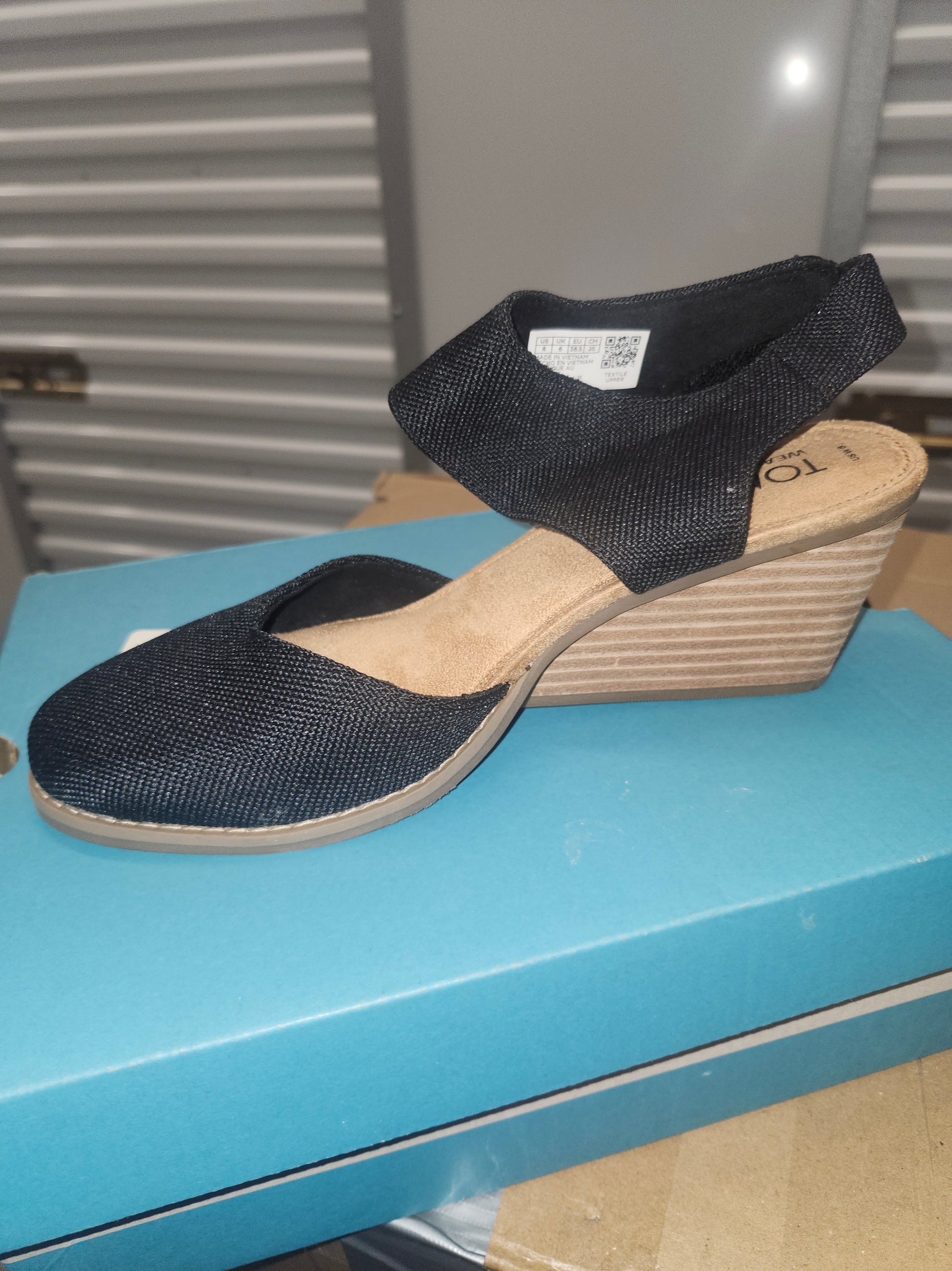 Toms Madison Wedge Heel Sandals, Black Canvas, Size 8US